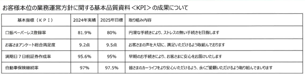 お客様本位の業務運営方針に関する基本品質資料<KPI>の成果について