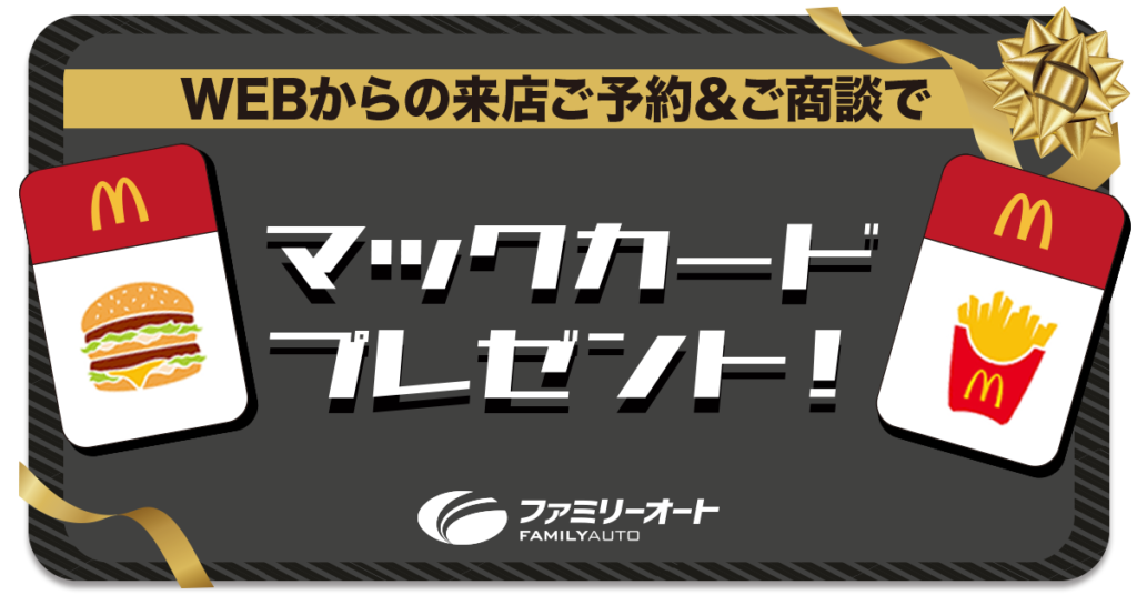 ※ WEBサイトより事前に来店ご予約された方限定です。当日のご予約は対象外となります。※ 初回ご予約・ご商談時のみ適用されます。※ 整備予約やご成約後のご予約は対象外です。※ 一家族様一回限りです。※ マックカードのデザ […]